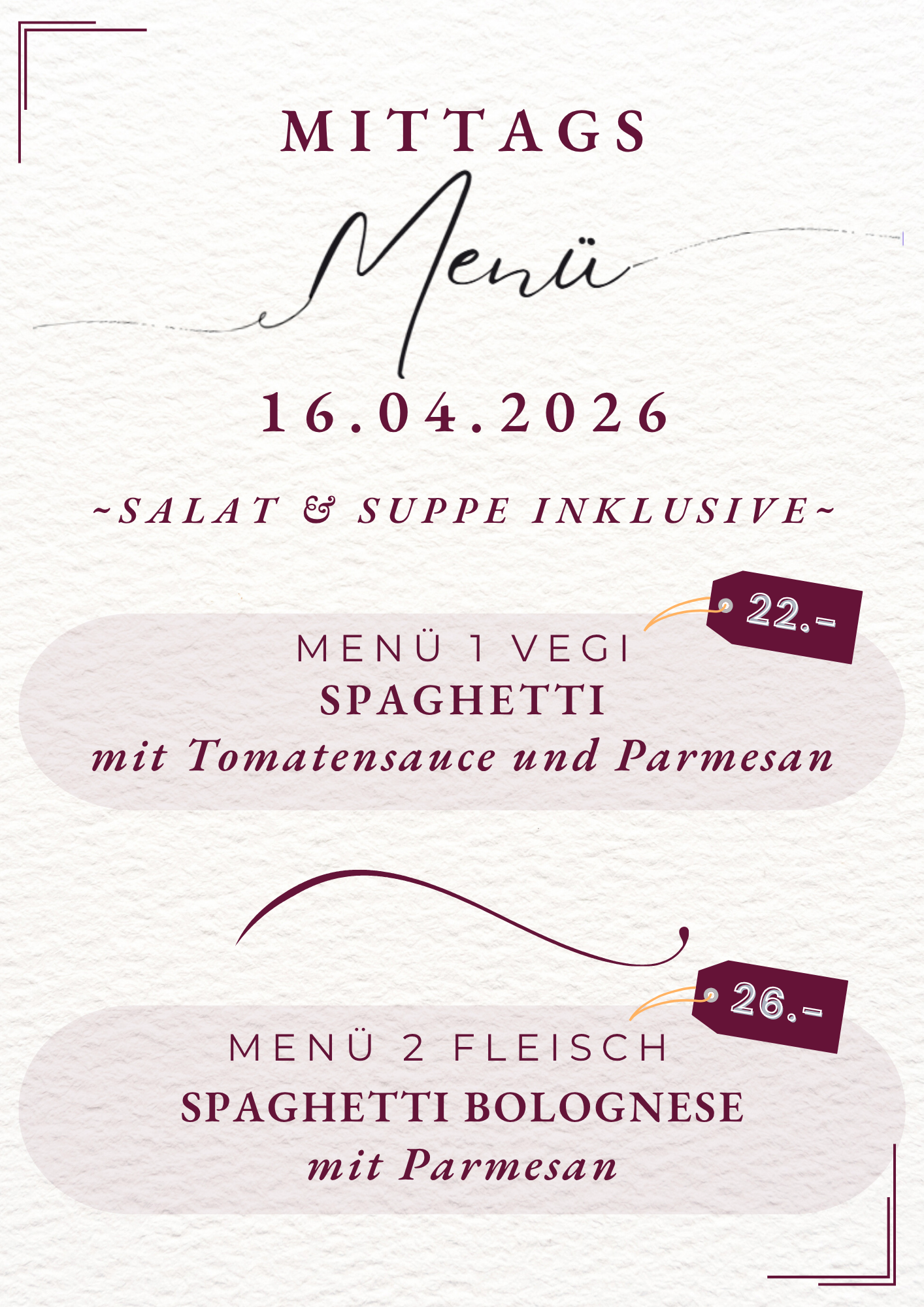 Mittagsmenüs 9., 10. April 2026